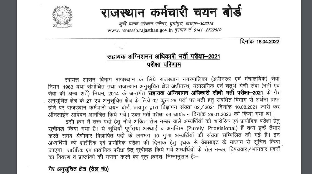 How to download RSMSSB Fireman and Assistant Fire Officer Result 2021