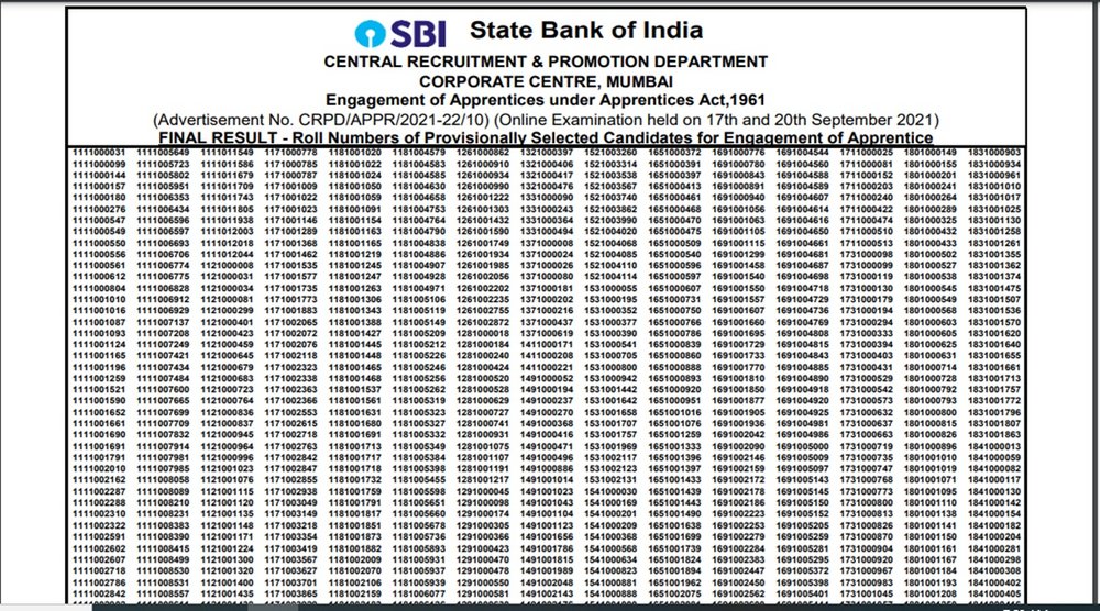 रिजल्ट चेक करने का डायरेक्ट लिंक ये sbi.co.in/documents/77530/11154687/02112021_Apprentices-2020-RESULT-15+FORMAT.pdf/c24a3c9b-c9cc-26dc-5e9e-84278b694193?t=1635847101739 है।