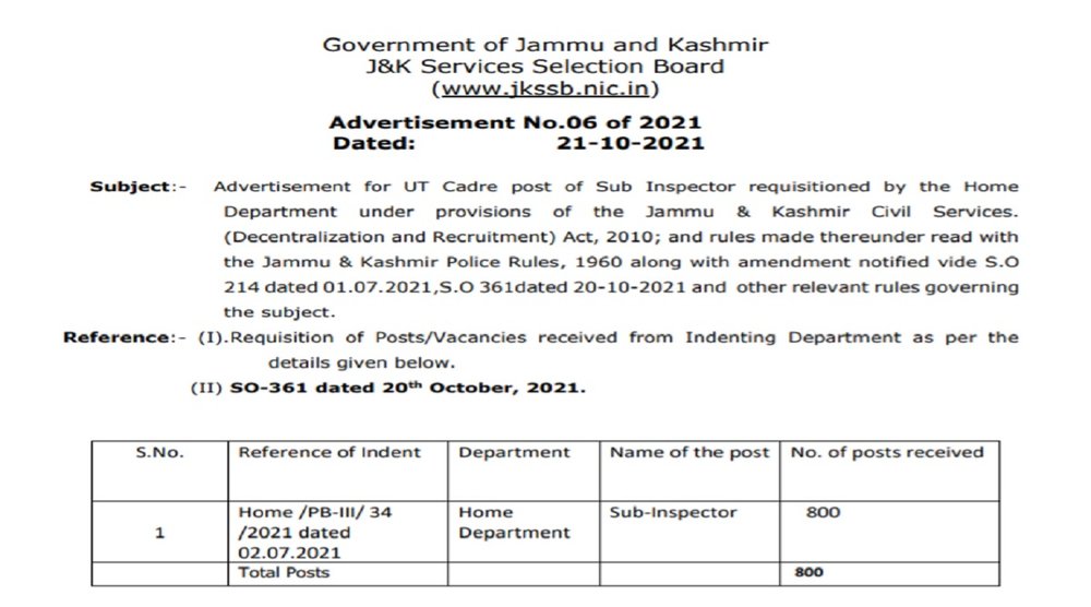 SI Recruitment 2021: जम्मू कश्मीर सेवा चयन बोर्ड ने सब इंस्पेक्टर भर्ती के लिए आवेदन मांगे हैं। जो लोग इन पदों के लिए आवेदन करना चाहते हैं, वे आधिकारिक साइट jkssb.nic.in पर विजिट कर सकते हैं।