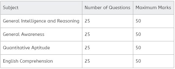 Tier I पेपर में ऑब्जेक्टिव टाइप, बहुविकल्पीय प्रश्न होंगे। उम्मीदवार इस बात का ध्यान रखें कि परीक्षा में 0.50 नंबरों की नेगेटिव मार्किंग लागू रहेगी। परीक्षा का पैटर्न इस प्रकार होगा।