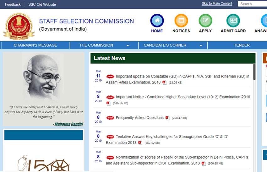 कर्मचारी चयन आयोग (SSC) ने 11 फरवरी से 11 मार्च तक असम राइफल्स में सीएपीएफ, एनआईए और एसएसएफ और राइफलमैन (जीडी) में कांस्टेबल (जीडी) के पद पर भर्ती परीक्षा आयोजित की है। आधिकारिक वेबसाइट पर पोस्ट किए गए एक नोटिस के अनुसार इसके लिए परिणाम 31 मई को आधिकारिक वेबसाइट ssc.nic.in पर जारी होने की उम्मीद है। सम्बंधित सूचना ssc की वेबसाइट के होमपेज पर उपलब्ध है।