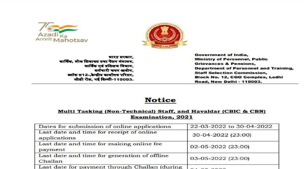 इस भर्ती प्रक्रिया के जरिए एमटीएस और हवलदार सहित विभिन्न पदों के कुल 3 हजार से अधिक रिक्तियों पर भर्तियां होनी है। आवेदन की प्रक्रिया 22 मार्च 2022 से शुरू हो गई है।