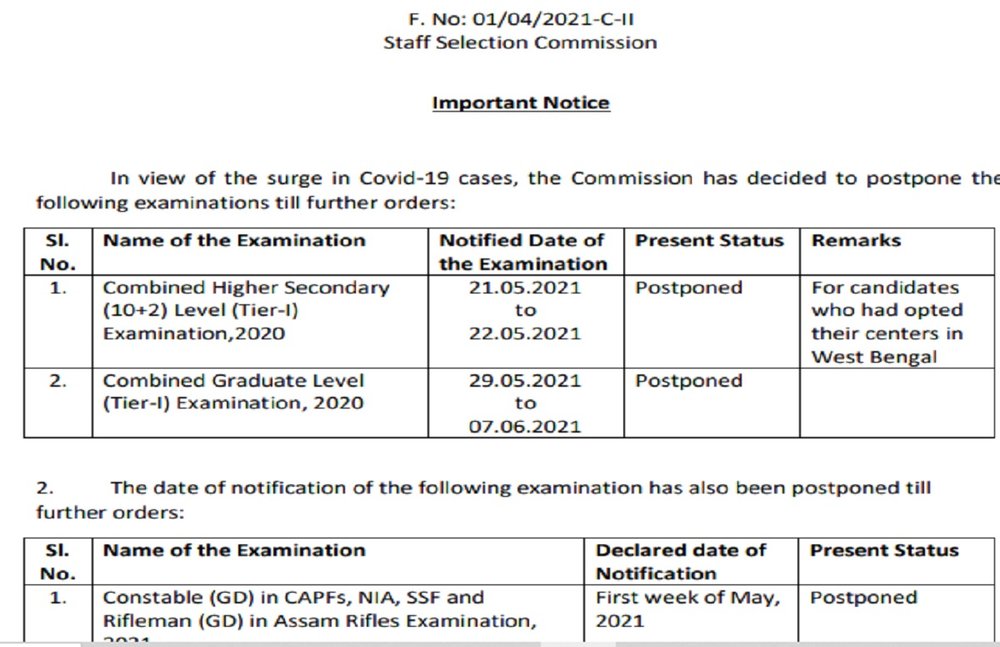 SSC New Notification 2021: कर्मचारी चयन आयोग (SSC) ने SSC GD 2021 नोटिफिकेशन को स्थगित कर दिया है जो मई 2021 के पहले सप्ताह में जारी होने वाली थी। SSC GD 2021 Notification जारी होने की नई तिथि कोरोना वायरस की स्थिति के आकलन करने के बाद आयोग द्वारा अपनी ऑफिशियल वेबसाइट ssc.nic.in पर जारी किया जाएगा।