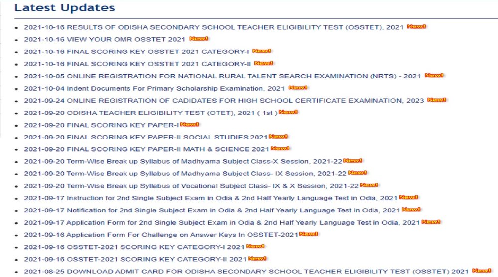 स्टेप 2: वेबसाइट के होम पेज पर दिए गये लिंक ‘ 2021-10-16 RESULTS OF ODISHA SECONDARY SCHOOL TEACHER ELIGIBILITY TEST (OSSTET), 2021’ पर क्लिक करें।