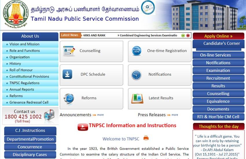 TNPSC Recruitment 2019: तमिलनाडु लोक सेवा आयोग ने वेटेरिनेरी असिस्टेंट सर्जन के रिक्त पदों पर भर्ती के लिए आवेदन की प्रक्रिया आज 18 नवंबर से शुरू कर दी है। भर्तियां तमिलनाडु एनिमल हस्बैंड्री सर्विस विभाग में की जानी हैं जिसके लिए इच्छुक उम्मीदवार आवेदन कर सकते हैं। उम्मीदवारों को आधिकारिक वेबसाइट पर जाकर ऑनलाइन माध्यम से आवेदन करना होगा। कुल 1141 रिक्त पदों पर भर्ती की जानी है तथा आवेदन करने की अंतिम तिथि 17 दिसंबर 2019 है।