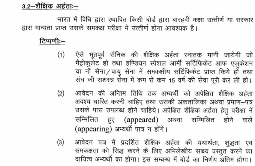 वांछनीय योग्यता:- 1. DOEACC / NIELIT ‘O’ लेवल कम्प्यूटर सर्टिफिकेट2. प्रांतीय सेना में दो साल का अनुभव3. NCC ‘B’ सर्टिफिकेट