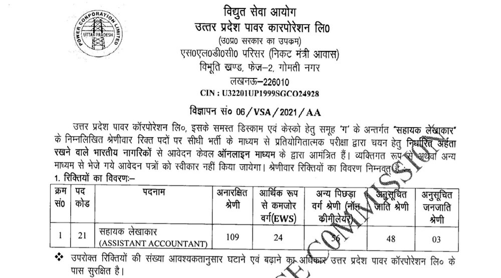 UPPCL Recruitment 2021: उत्तर प्रदेश पावर कॉरपोरेशन लिमिटेड (UPPCL) ने असिस्टेंट अकाउंटेंट पदों पर भर्ती के लिए योग्य उम्मीदवारों से आवेदन मांगे हैं। सभी इच्छुक उम्मीदवार UPPCL Assistant Accountant Recruitment 2021 के लिए आधिकारिक वेबसाइट uppcl.org पर 28 अक्टूबर 2021 तक ऑनलाइन आवेदन कर सकते हैं। इन पदों पर भर्ती के लिए आवेदन प्रक्रिया 8 अक्टूबर 2021 से ही शुरू की जा चुकी है।