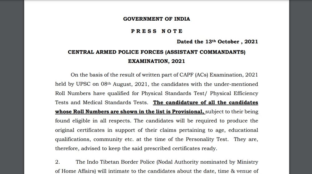 स्टेप 4: इसके बाद UPSC CAPF Result 2021 का पीडीएफ खुल जाएगा।
