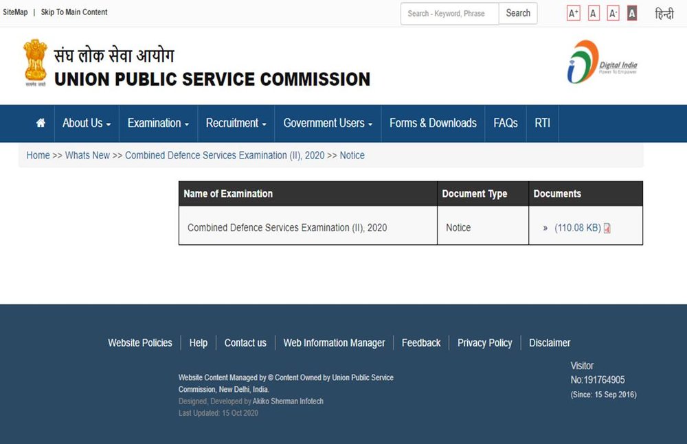 चरण 3: नए पेज पर, ‘e-admit card – CDS examination (II) 2020’ के लिंक पर क्लिक करें।
