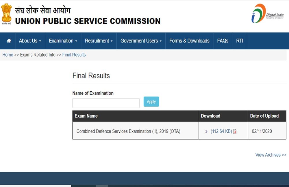 UPSC CDS II Result 2019: संघ लोक सेवा आयोग (UPSC) ने संयुक्त रक्षा सेवा (CDS) परीक्षा II का परिणाम घोषित कर दिया है। कुल 241 उम्मीदवारों ने परीक्षा पास की है। मेरिट लिस्ट जारी कर दी गई है और अंतिम परिणामों की घोषणा की तारीख से 15 दिनों के भीतर उम्मीदवारों के नंबर उपलब्ध होंगे। यह केवल 30 दिनों के लिए उपलब्ध होंगे।