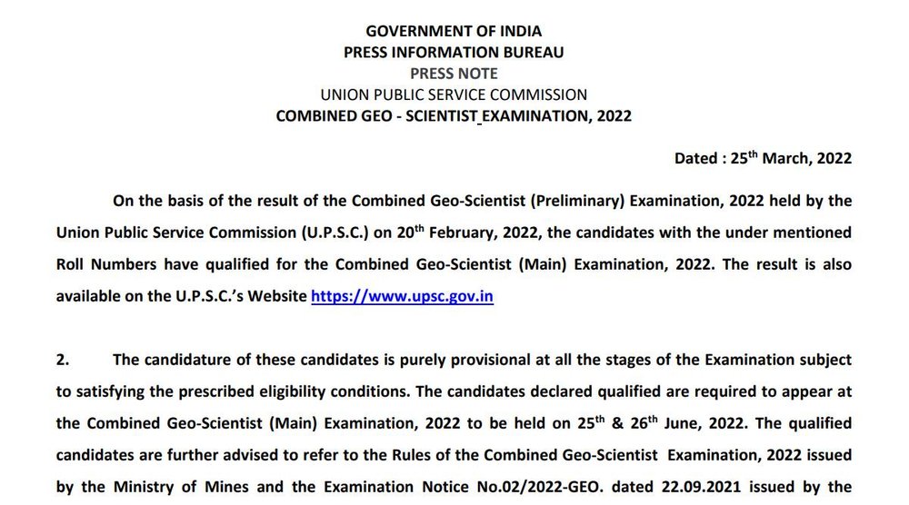 How to download UPSC Geo Scientist Preliminary Exam Result 2022