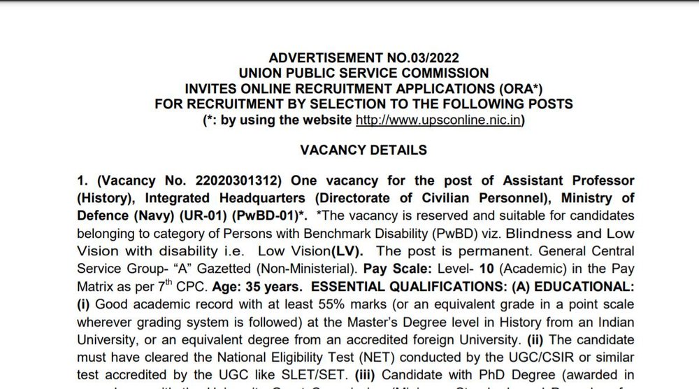 इन पदों पर भर्ती के लिए उम्मीदवारों का चयन इंटरव्यू के आधार पर किया जाएगा। सभी योग्य उम्मीदवार UPSC Assistant Professor Recruitment 2022 के लिए आयोग की आधिकारिक वेबसाइट upsc.gov.in पर 3 मार्च 2022 तक ऑनलाइन आवेदन कर सकते हैं। इसके लिए उम्मीदवारों को 25 रुपए आवेदन शुल्क देना होगा। सभी उम्मीदवार आवेदन करने से पहले अपनी योग्यता अवश्य जांच लें। अधिक जानकारी के लिए आधिकारिक वेबसाइट पर चेक कर सकते हैं।