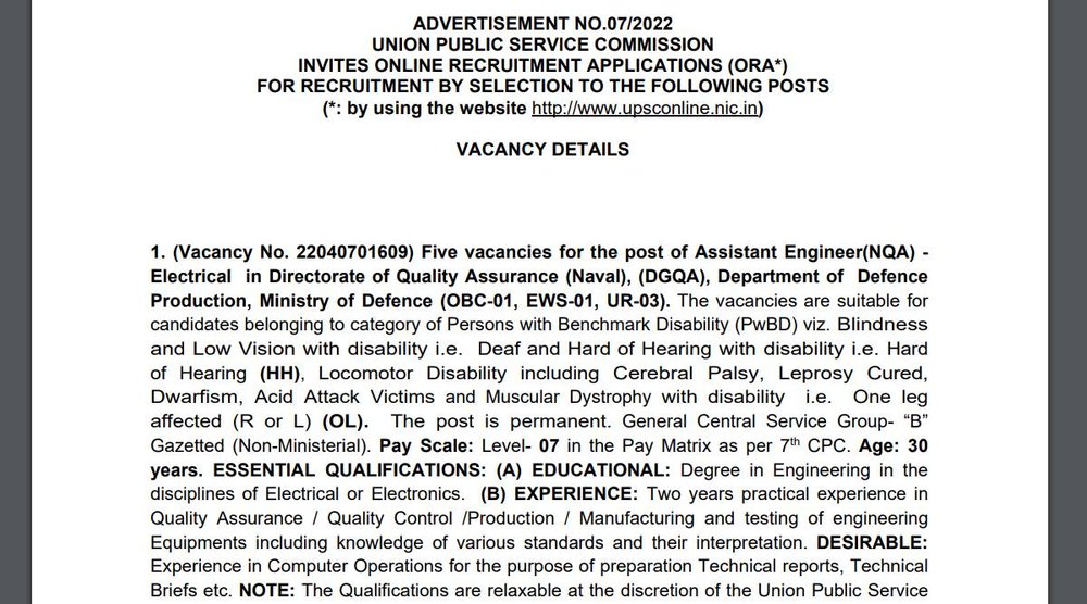 UPSC Recruitment 2022: संघ लोक सेवा आयोग (UPSC) ने असिस्टेंट डायरेक्टर सहित विभिन्न पदों पर भर्ती के लिए नोटिफिकेशन जारी किया है। सभी योग्य उम्मीदवार UPSC Assistant Director Recruitment 2022 के लिए आधिकारिक वेबसाइट upsc.gov.in पर 29 अप्रैल 2022 तक या उससे पहले ऑनलाइन आवेदन कर सकते हैं।