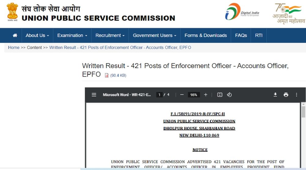 स्टेप 3: लिंक पर क्लिक करने के बाद उम्मीदवारों के सामने UPSC EPFO Result 2021 की पीडीएफ होगी।
