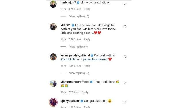 टीम इंडिया के पूर्व स्पिनर हरभजन सिंह, मुंबई इंडियंस के ऑलराउंडर क्रुणाल पंड्या, भारतीय टीम के बल्लेबाजी कोच विक्रम राठौड़ और टेस्ट टीम के उपकप्तान अंजिक्य रहाणे ने इन दोनों को अपनी शुभकामनाएं दी हैं। इस लिस्ट में युजवेंद्र चहल, दक्षिण अफ्रीका के क्रिकेट फाफ डुप्लेसिस और वेस्टइंडीज के विस्फोटक बल्लेबाज क्रिस गेल भी हैं। गेल ने मजाकिया अंदाज में लिखा, बधाई हो काका।