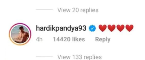 हार्दिक ने कमेंट करते हुए चार लव इमोजी बनाए। उनके इस कमेंट को इंस्टाग्राम पर काफी पसंद किया जा रहा है।