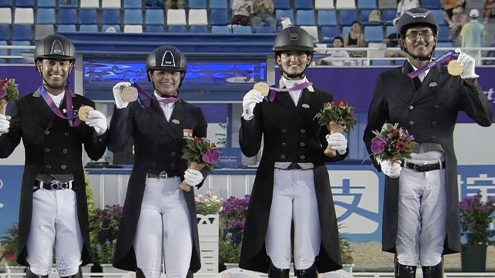 बता दें कि एड्रेनेलिन फिरफोड पर सवार दिव्यकृति सिंह, हृदय विपुल छेडा (चेमक्सप्रो एमरेल्ड) और अनुश अग्रवाला (एट्रो) ने कुल 209.205 प्रतिशत अंक के साथ स्वर्ण पदक जीता जो एशियाई खेलों की घुड़सवारी स्पर्धा में भारत का सिर्फ दूसरा स्वर्ण पदक है। सुदीप्ति हजेला भी टीम का हिस्सा थी लेकिन सिर्फ शीर्ष तीन खिलाड़ियों के स्कोर गिने जाते हैं।