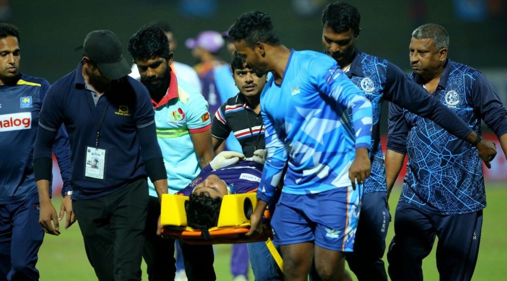 कैंडी फाल्कंस की पारी का 16वां ओवर नुवान प्रदीप डाल रहे थे। ओवर का तीसरा गेंद नुवान अपना लाइन भटक गए और गेंद लेग स्टंप से बाहर डाल दी। प्रदीप ने स्लोअर गेंद डाली थी। बल्लेबाज ने इस विकेटकीपर के पास जाने दिया और गेंद एक टप्पा खाकर आजम खान के सिर पर जा लगी।