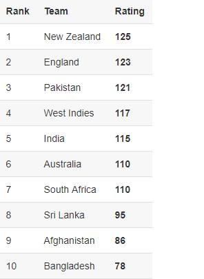 वेस्टइंडीज से टी20 मैच में मिली करारी हार के बाद टीम इंडिया के लिए एक और बुरी खबर है। ताजा आईसीसी टी20 टीम रैंकिंग्स में टीम इंडिया की रैंकिंग एक पायदान गिर गई है। वहीं विंडीज टीम को एक स्थान का फायदा हुआ है। वेस्टइंडीज भारत को पछाड़कर चौथे पायदान पर आ गई है। जबकि टीम इंडिया अब पांचवे पायदान पर पहुंच गई है। इस मैच से पहले भारत चौथे नंबर पर था, लेकिन हारने के बाद उसे तीन रेटिंग पॉइंट्स का नुकसान हुआ और अब वह 115 पॉइंट्स के साथ पांचवे नंबर पर है। न्यू जीलैंड 125 पॉइंट्स के साथ पहले, इंग्लैंड (123) दूसरे, पाकिस्तान (121) तीसरे स्थान पर काबिज है। इस मैच में 62 गेंदों पर 125 रन ठोकने वाले इविन लुईस को भी अपना दमदार पारी का इनाम मिला है। लुईस अब चौथे नंबर पर आ गए हैं। सर्वश्रेष्ठ टी20 बल्लेबाजों की लिस्ट में विराट कोहली अब भी नंबर एक पर हैं। इसके बाद आरॉन फिंच और न्यू जीलैंड के कप्तान केन विलियमसन का नंबर है। बॉलिंग रैंकिंग की बात करें तो इमाद वसीम नंबर एक पर काबिज हैं। जसप्रीत बुमराह दूसरे, इमरान ताहिर तीसरे, राशिद खान चौथे और सैम्युअल बद्री पांचवे स्थान पर खिसक गए हैं। शीर्ष 10 गेंदबाजों में भारत के रविचंद्रन अश्विन हैं।