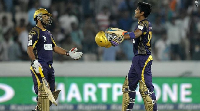 सलामी बल्लेबाज रोबिन उथप्पा ने पेरिस पर चौका जड़ने के बाद बेहरेनडोर्फ की गेंद को भी दो बार बाउंड्री तक पहुंचाया लेकिन नाथन कोल्टर नील की गेंद पर विकेटकीपर सैम वाहटमैन के हाथों में खेल गए। उन्होंने 18 गेंद में 23 रन बनाए। मनीष पांडे और रेयान टेन डोएशे ने चौथे विकेट के लिए 30 रन जोड़कर टीम को संभालने की कोशिश की लेकिन कोल्टर नील ने पांडे को बोल्ड करके इस साझेदारी को तोड़ दिया।