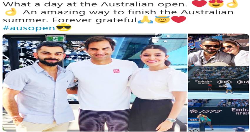 भारतीय टीम ने शुक्रवार को ऑस्ट्रेलिया को तीसरे वनडे में हराकर सीरीज पर कब्जा जमाया। ऑस्ट्रेलिया को तीनों ही फॉर्मेट में मात देने के बाद भारत की नजरें अब बुधवार से होने वाले न्यूजीलैंड दौरे पर होगी। न्यूजीलैंड दौरे पर भारत को पांच वनडे और तीन टी-20 मैचों की सीरीज मैच खेलना है। सीरीज का पहला वनडे मुकाबला 23 जनवरी (बुधवार) से खेला जाना है। ऑस्ट्रेलिया में ऐतिहासिक जीत हासिल करने के बाद कप्तान विराट विराट कोहली वाइफ अनुष्का शर्मा के साथ टेनिस ग्रैंड स्लैम ऑस्ट्रेलियन ओपन देखने पहुंचे। यह मुकाबला मेलबर्न में ही खेला जा रहा था। मैच को देखते हुए कोहली और अनुष्का ने कुछ तस्वीरें भी खिंचवाईं। इस दौरान उन्होंने टेनिस खिलाड़ी रोजर फेडरर से भी मुलाकात की। फेडरर से मिलने के बाद कोहली ने सोशल मीडिया पर तस्वीर को साझा करते हुए लिखा, ‘ऑस्ट्रेलियन ओपन में शानदार दिन रहा, ऑस्ट्रेलियाई दौरे को खत्म करने का एक अनोखा तरीका।’