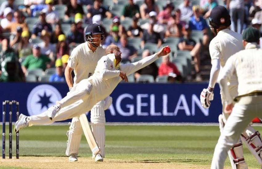 ऑस्ट्रेलिया और इंग्लैंड के बीच एशेज सीरीज के दूसरे मैच का तीसरे दिन इंग्लैंड की पूरी टीम महज 227 रन बनाकर ऑल आउट हो गई। ऑस्ट्रेलिया के पास पहली पारी के आधार पर 217 रन की लीड है। इस सीरीज का पहला मैच ऑस्ट्रेलिया जीत चुका है। वहीं दूसरे मैच में भी उसकी स्थिति काफी मजबूत दिखाई पड़ रही है। तीसरे दिन जब ऑस्ट्रेलियाई गेंदबाज इंग्लैंड के खिलाड़ियों को आउट कर रहे थे तो एक ऐसा दृश्य देखने को मिला जो अक्सर नहीं मिलता। कहा जाता है कि क्रिकेट में कैच का महत्व बहुत ज्यादा होता है। इस मैच में नाथन लायन ने एक गजब का कैच पकड़कर सभी को हैरान कर दिया। दरअसल, पारी के 49वें ओवर में नाथन लायन गेंदबाजी करने आए और दूसरी ही गेंद पर उन्होंने मोइन अली को आउट कर दिया। मोइन अली उस समय जॉनी बेयरस्टो के साथ साझेदारी कर टीम को आगे ले जाने का प्रयास कर रहे थे। लेकिन नाथन लायन ने उनकी उम्मीदों पर पानी फेर दिया।