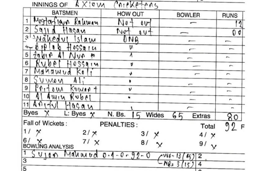 इस क्रिकेट लीग का आयोजन क्रिकेट कमेटी ऑफ ढाका मेट्रोपोलिस कर रही है। एग्जोम ने टॉस जीतकर लालमटिया की टीम को पहले बल्लेबाजी का निमंत्रण दिया। लालमटिया की पूरी टीम 14 ओवर में 88 रन बनाकर ऑलआउट हो गई। लालमिटया टीम का एक प्लेयर रन आउट हुआ, तीन को विकेटकीपर ने लपका, दो को पगबाधा आउट दिया गया, एक खिलाड़ी स्टंप आउट हुआ था। लालमटिया टीम के गेंदबाज सुजोन महमूद ने जानबूझकर ऐसी गेंदबाजी की और इसमें उनकी टीम ने उनका पूरा साथ भी दिया। दरअसल महमूद ने अंपायर के विवादास्पद फैसलों के विरोध में ऐसी गेंदबाजी की। गेंदबाजी कर रही टीम ने आपस में यह तय किया और महमूद ने इस तरह की गेंदबाजी की। यह मैच मंगलवार को लालमटिया क्लब और एग्जोम क्रिकेटर्स के बीच यह खेला गया था।
