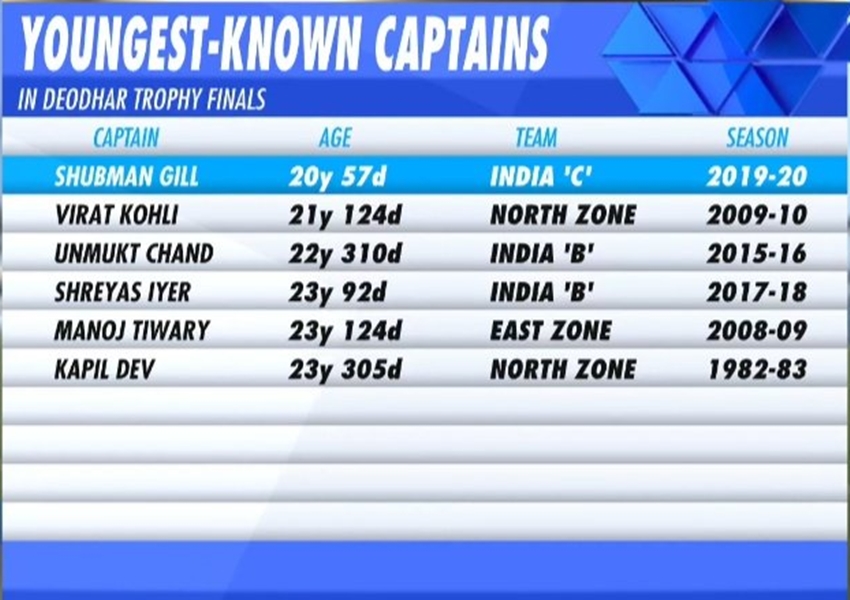 मैच हार गए लेकिन रिकॉर्ड उन्होंने अपने नाम कर लिया। बता दें कि इस ट्रॉफी में शुभमन और कोहली के अलावा युवा कैप्टेंसी को लेकर उनमुक्त चांद भी सुर्खियां बटोर चुके हैं। विराट कोहली के स्टेट मेट उनमुक्त चांद 2015 में देवधर ट्रॉफी के फाइनल में इंडिया बी के तीसरे सबसे युवा कप्तान रहे। तब उनकी उम्र महज 22 साल थी। और साल 2009 में कोहली ने नॉर्थ जोन की कप्तानी की थी।