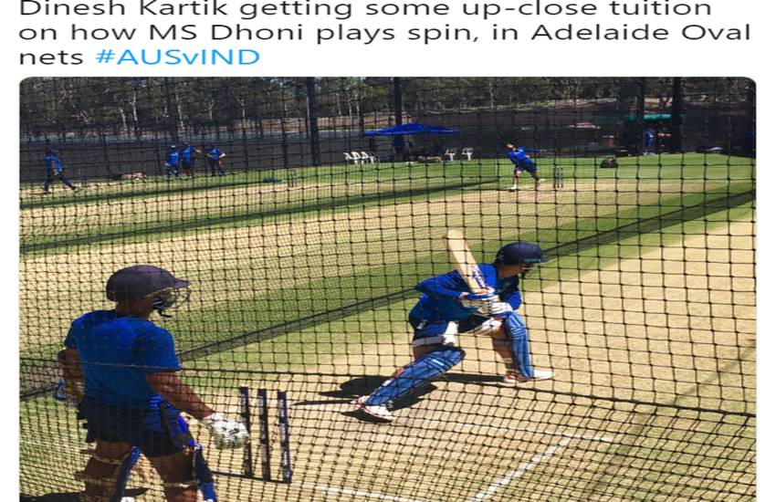 सिडनी में ऑस्ट्रेलिया के खिलाफ पहले वनडे मैच को 34 रनों से गंवाने के बाद भारतीय टीम के लिए एडिलेड वनडे में जीत जरूरी हो गई है। भारत को अगर इस सीरीज में बने रहना है तो टीम को मंगलवार को दूसरा वनडे मुकाबला हर हाल में जीतना होगा। इस मैच से पहले टीम के खिलाड़ी भी नेट पर जमकर पसीना बहा रहे हैं। तेज गेंदबाज भुवनेश्वर कुमार सोमवार को ज्यादा से ज्यादा समय यॉर्कर डालते हुए नजर आए। वहीं पूर्व भारतीय कप्तान महेंद्र सिंह धोनी भी तेज गति से बल्लेबाजी करने की प्रैक्टिस की। इस दौरान धोनी ने टीम के साथी खिलाड़ी दिनेश कार्तिक को एक गुर भी खिसाने का काम किया। दरअसल, धोनी जब स्पिन के खिलाफ प्रैक्टिस कर रहे थे तो इस दौरान उनके ठीक पीछे कार्तिक खड़े थे। कार्तिक धोनी के सभी शॉट्स को बेहद करीब से देख रहे थे, धोनी भी कार्तिक को अपने शॉट्स के जरिए स्वीप खेलना सिखा रहे थे। ऐसे में देखना दिलचस्प होगा कि कार्तिक धोनी द्वारा खेले गए इन शॉ्टस का कितना इस्तेमाल कर पाते हैं।