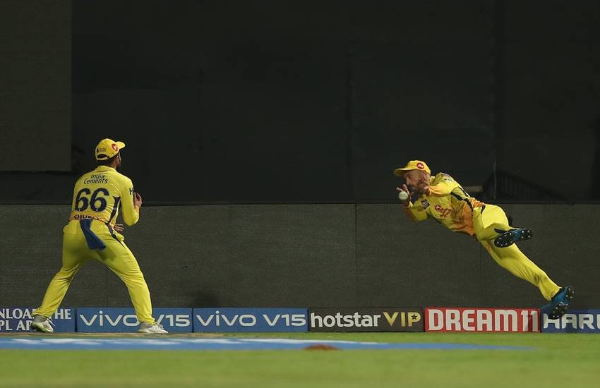 मार्कस स्टोइनिस का यह कैच फॉफ डु प्लेसिस और ध्रुव शोरे ने मिलकर पकड़ा। बाउंड्री लाइन पर खड़े फॉफ डु प्लेसिस ने हवा में छलांग लगाकर पहले कैच पकड़ा और फिर उसे ध्रुव शोरे की ओर हवा में फेंक दिया। ध्रुव शोरे ने आसानी से कैच को पकड़ स्टोइनिस को वापस पवेलियन भेज दिया। इस कैच को देख खुद स्टोइनिस भी हैरान रह गए। कैच लेने के बाद प्लेसिस का बैलेंस बिगड़ गया और वह बाउंड्री की ओर गिरने लगे, इसी दौरान बैकअप देने के लिए आए शोरे ने कैच लपका और चेन्नई को बड़ी सफलता दिलाई।