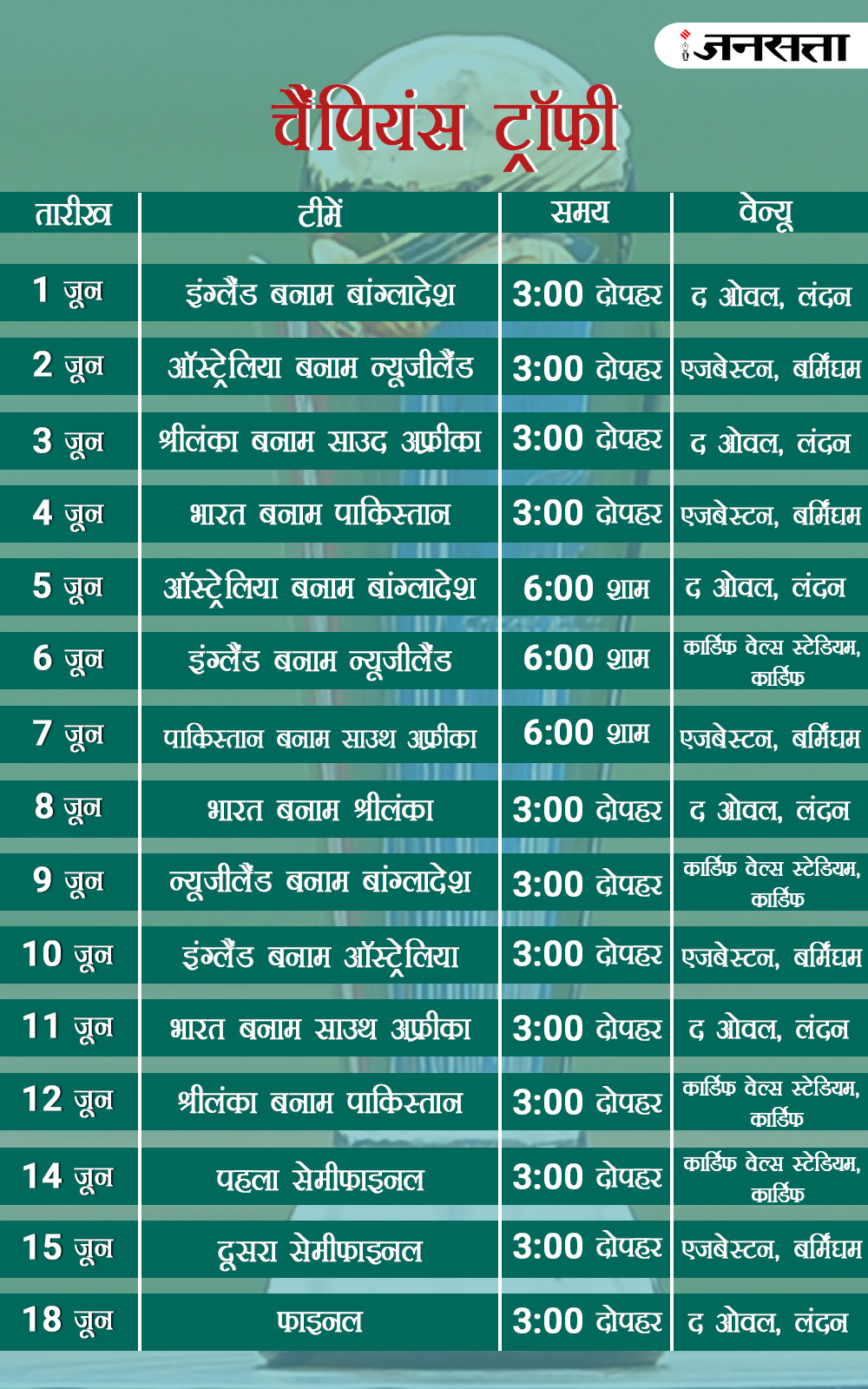 4 जून- भारत बनाम पाकिस्तान