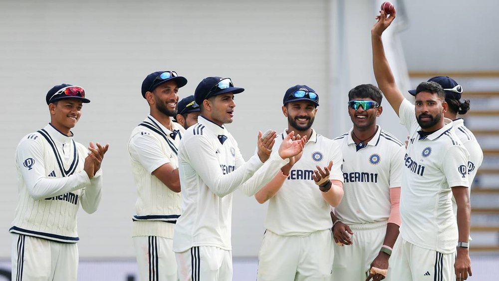 भारत के 587 रन के जबाव में इंग्लैंड पहली पारी में 407 रन पर आउट हो गई और भारत को 180 रन की बढ़त मिली। सिराज ने 6 जबकि आकाशदीप ने 4 विकेट लिए। इंग्लैंड के लिए हैरी ब्रुक ने 158 रन जबकि जेमी स्मिथ ने नाबाद 184 रन की पारी खेली।