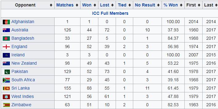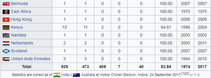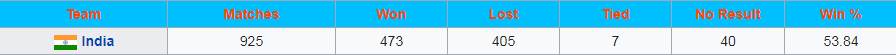 लगातार दस वनडे मैच जीतने का कारनामा आस्ट्रेलियाई टीम 6 बार, दक्षिण अफ्रीका 5 बार, इंग्लैंड, पाकिस्तान, वेस्ट, इंडीज और श्रीलंका 2-2 बार कर चुकी हैं। यहां तक न्यूजीलैंड भी ये लगातार दस मैच जीतने का रिकॉर्ड बना चुका है। आंकड़ों पर नजर डाले तो टीम इंडिया ने कुल 925 वनडे खेले हैं। जिनमें भारत ने 473 मैच में जीत हासि की जबकि 405 मैचों में टीम को हार का सामना करना पड़ा। इस दौरान सात मैच ड्रो रहे जबकि 40 के परिणाम नहीं निकले।