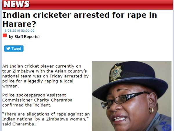 सूत्रों ने कहा, ‘हरारे में बलात्कार के कथित आरोप में भारतीय क्रिकेटर के संबंध में आयी मीडिया रिपोर्टों के बारे में हमने जिम्बाब्वे में हमारे दूत से बात की है। रिपोर्ट पूरी तरह झूठ है। कोई भी भारतीय क्रिकेटर इसमें शामिल नहीं है।’
