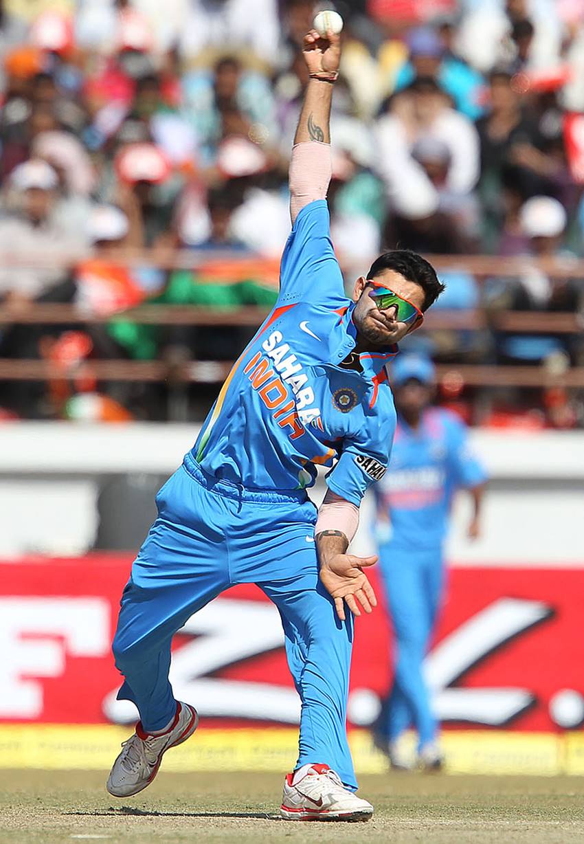 भारतीय टीम के मौजूदा कप्तान विराट कोहली अपनी बल्लेबाजी के लिए जाने जाते हैं। उन्होंने अपने बल्ले के दम से कई रिकॉर्ड अपने नाम किया है। इस समय कोहली श्रीलंका के खिलाफ टेस्ट सीरीज खेल रहे हैं। मैच के चौथे दिन विराट कोहली गेंदबाजी करते नजर आए। भारतीय टीम इस मैच में पांच गेंदबाजों के साथ खेल रही है। इसके बावजूद कोहली ने कल गेंदबाजी कर सभी को हैरान कर दिया। लेकिन क्या आप जानते हैं बल्लेबाजी रोज नए-नए रिकॉर्ड बनाने वाले विराट कोहली के नाम गेंदबाजी में भी एक रिकॉर्ड मौजूद है। दरअसल, साल 2011 में विराट कोहली ने इंग्लैंड के खिलाफ टी-20 मैच में कुछ ऐसा किया था जिसके बाद गेंदबाजी में एक रिकॉर्ड उनके नाम हो गया। 2011 में खेले गए टी-20 मैच में भारत ने इंग्लैंड के खिलाफ पहले बल्लेबाजी करते हुए 165 रन बनाए थे। इंग्लैंड की शुरुआत खराब रही और लक्ष्य का पीछा करते उतरे इंग्लैंड के खिलाड़ी टीम को एक मजबूत शुरुआत दिलाने में नाकामयाब रहे।
