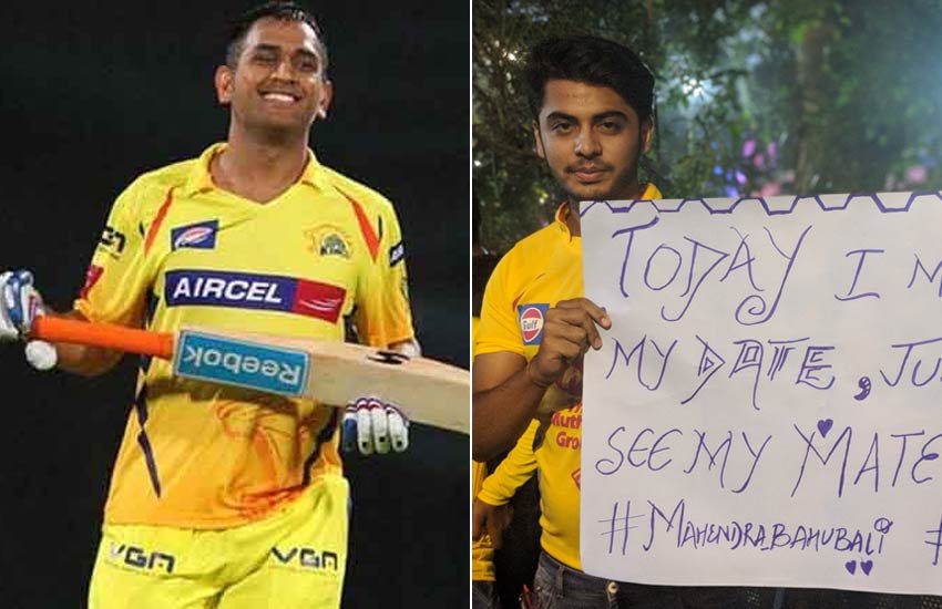 इन्ही फैन्स के बीच एक शख्स ऐसा भी मौजूद था जो अपनी गर्लफ्रेंड को छोड़ धोनी की बल्लेबाजी देखने स्टेडियम पहुंचा था। इतना ही नहीं उसने अपने हाथ में एक पोस्टर पकड़ रखा था, जिसमें लिखा था कि आज मैंने मेरे साथी धोनी को देखने के लिए अपनी गर्लफ्रेंड के साथ डेट को मिस कर दिया। इस तस्वीर को चेन्नई सुपरकिंग्स ने अपने टि्वटर अकाउंट पर शेयर करते हुए लिखा, ”उम्मीद करते हैं कि तुम्हारी गर्लफ्रेंड तुम्हें या इस ट्वीट को आज रात टीवी पर न देख ले”।