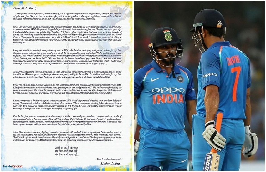 सहवाग ने अपने ट्विटर पेज पर लिखा, ‘‘एक पीढ़ी में एक बार एक खिलाड़ी आता है और राष्ट्र उससे जुड़ जाता है। उसे अपने परिवार के सदस्य जैसे मानता है। कुछ बहुत अपना सा लगता है। ऐसे शख्स को जन्मदिन की शुभकामनाएं जो कई लोगों के लिये उनकी दुनिया है। ’’ जाधव ने इस अवसर पर मराठी में एक लंबा पत्र लिखकर माही के प्रति अपना प्यार और सम्मान जताया है।