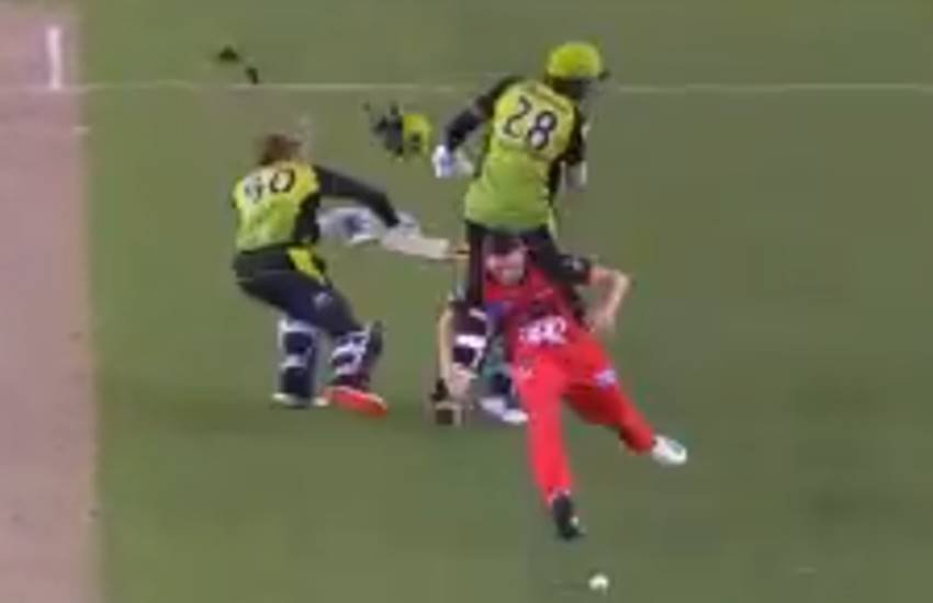 ऑस्ट्रेलिया में चल रही बिग बैश लीग में बुधवार को मेलबर्न रेनेगेड्स और सिडनी थंडर्स के बीच मुकाबला खेला गया। मेलबर्न रेनेगेड्स और सिडनी थंडर्स के बीच खेले गए मैच के दौरान जोनाथन कुक अजीब ढंग से रन आउट हुए। क्रिकेट इतिहास में इस तरह का रन आउट बहुत कम ही बार देखा गया है। दरअसल, मेलबर्न ने सिडनी के सामने जीत के लिए 141 रनों का लक्ष्य रखा था, जिसे सिडनी के बल्लेबाज हासिल करने में नाकाम रहे। आखिरी के ओवरों में टीम को जीत दिलाने के लिए तेज गति से रन बनाने की कोशिश में गुरिंदर संधू ने शॉट खेलकर रन भागने की कोशिश की और इस दौरान वह अपने साथी बल्लेबाज जोनाथन कुक से टकरा गए। कुक और संधू के बीच गेंद को पकड़ने के लिए गेंदबाज हैरी गुरनी के आने से दोनों ही बल्लेबाजों का बैलेंस बिगड़ा और वह आपस में ही टकरा गए। बता दें कि इस मैच में मेलबर्न के कप्तान एरोन फिंच ने टॉस जीतकर पहले बल्लेबाजी करने का फैसला किया।