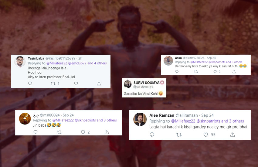 पाकिस्तान क्रिकेट टीम के ऑलराउंडर खिलाड़ी मोहम्मद हफीज अपनी एक तस्वीर को सोशल मीडिया पर शेयर कर ट्रोल हो गए हैं। मोहम्मद हफीज ने कुछ दिन पहले ही एक शर्टलेस तस्वीर शेयर की थी, जिसके बाद फैंस ने उनकी जमकर आलोचना की थी। हफीज एक बार फिर फैंस के निशाने पर हैं, इस बार उन्होंने स्विमिंग पूल के नजदीक शर्टलेस सेल्फी लेकर उसे सोशल मीडिया पर शेयर किया। हफीज के ऐसा करते ही उनकी तस्वीर पर खूब सारे कमेंट्स आने लगे। इस पोस्ट के बाद अधिकतर फैंस ने उनकी खिंचाई करनी शुरू कर दी। कुछ फैंस के मुताबिक मोहम्मद हफीज वेस्टइंडीज जाकर काले हो गए हैं तो वहीं एक फैन ने उनसे पूछा कि क्या भाई गटर में गिर गए थे क्या? जबकि एक फैन ने कमेंट में उन्होंने गरीबों का विराट कोहली बता दिया। बता दें कि हफीज पिछले कुछ समय से वेस्टइंडीज में हैं।