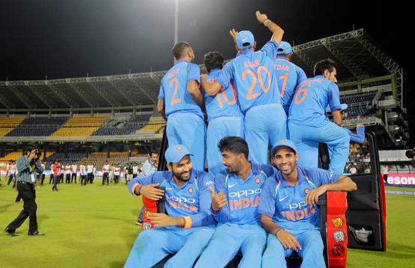 भारत ने श्रीलंका के कोलंबो में रविवार को मेजबान टीम के साथ हुए पांचवे वनडे में श्रीलंकाई टीम को करारी शिकस्त देते हुए वनडे सीरीज को 5-0 से अपने नाम कर लिया। पिछले चार साल में यह तीसरा ऐसा वनडे था जिसमें टीम इंडिया के कप्तान विराट कोहली की कप्तानी में भारतीय टीम ने 5-0 से क्लीन स्विप के साथ सीरीज पर अपना कब्जा कर लिया है। रविवार को खेले गए आखिरी मैच में जीत के बाद टीम इंडिया ने मैदान पर गाड़ी दौड़ाई। गाड़ी के ड्राइवर टीम इंडिया के पूर्व कप्तान महेंद्र सिंह धोनी थे। यह गाड़ी जसप्रीत बुमराह को मैन ऑफ द सीरीज के चुने जाने पर तोहफे में मिली थी। पूरी टीम इंडिया ने इस 5 सीट वाली छोटी सी गाड़ी में सवार होकर और ट्रॉफी को गाड़ी की छत पर रखकर स्टेडियम में गाड़ी चलाई। भुवनेश्वर कुमार को उनके शानदार बॉलिंग के लिए ‘मैन ऑफ द मैच’ का अवॉर्ड मिला। इस दौरान कप्तान विराट कोहली गाड़ी में पीछे बैठे थे।