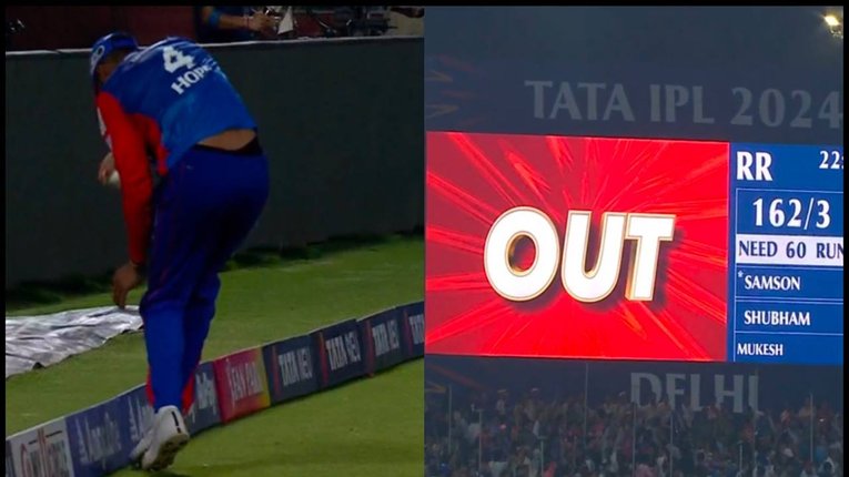 संजू सैमसन ने लॉन्ग ऑन की तरफ शॉट खेला। शाई होप ने कैच पकड़ा। वह बाउंड्री लाइन से काफी करीब…