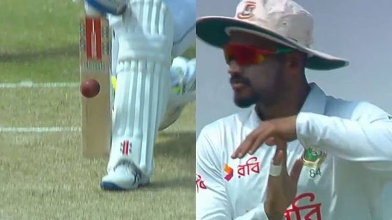 चट्टोग्राम टेस्ट के पहले दिन टी ब्रेक से कुछ समय पहले बाएं हाथ के स्पिनर तैजुल इस्लाम की गेंद को…