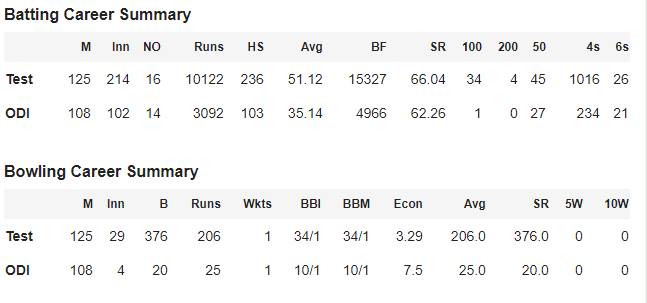 वर्तमान में टेस्ट में सबसे अधिक रन मारने के मामले में वह 12वें नंबर पहुंच गए हैं। अभी कुल 13 खिलाड़ियों ने टेस्ट दस हजार रन या इससे अधिक मारे हैं।