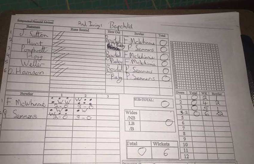 बीते साल सन् 2016 में इंग्लैंड में काउंटी क्रिकेट में क्राइस्ट चर्च यूनिवर्सिटी ने बपचाइल्ड क्लब को जीत के लिए 221 रन का लक्ष्य दिया। लेकिन जब किस्मत खराब हो तो आपको कोई भी बचा नहीं सकता और इस टीम के साथ भी ऐसा ही हुआ। टीम के नौ खिलाड़ी बिना खाता खोले ही आउट हो गए। आखिरी बल्लेबाज को ये कहकर भेजा गया कि किसी तरह वो एक रन बनाकर टीम को इस शर्मनाक रिकॉर्ड से बचाए। मगर ये खिलाड़ी भी खाता खोलने में नाकाम रहा और बपचाइल्ड क्लब बिना कोई रन बनाए महज 20 गेंदों में ऑल आउट हो गया।