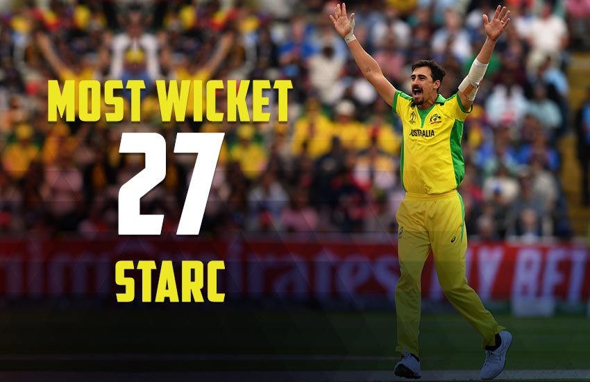 Most Wicket In World cup 2019: आईसीसी वर्ल्ड कप 2019 का फाइनल मुकाबला मेजबान इंग्लैंड और न्यूजीलैंड के बीच खेला गया। इस मैच में इंग्लैंड ने न्यूजीलैंड को हराकर विश्व कप ट्रॉफी उठाने के सपने को साकार कर लिया। इंग्लैंड की टीम पहली बार विश्व विजेता बनी है। इस टूर्नामेंट में पूर्व चैंपियन ऑस्ट्रेलिया सेमीफाइनल में हारकर पहले ही बाहर हो गया था। लेकिन उसके तेज गेंदबाज मिशेल स्टार्क ने शानदार गेंदबाजी करते हुए सबसे ज्यादा विकेट लिए। उन्होने लगातार दूसरे विश्व कप में गोल्डन बॉल का खिताब अपने नाम किया है। उन्होंने पिछले विश्व कप में भी सबसे ज्यादा विकेट लिए थे। स्टार्क ने इस टूर्नामेंट में 10 मैचों में 18.59 के औसत से 27 विकेट चटकाए। ये विश्वकप के इतिहास में एक टूर्नामेंट में चटकाए गए सबसे ज्यादा विकेट हैं।