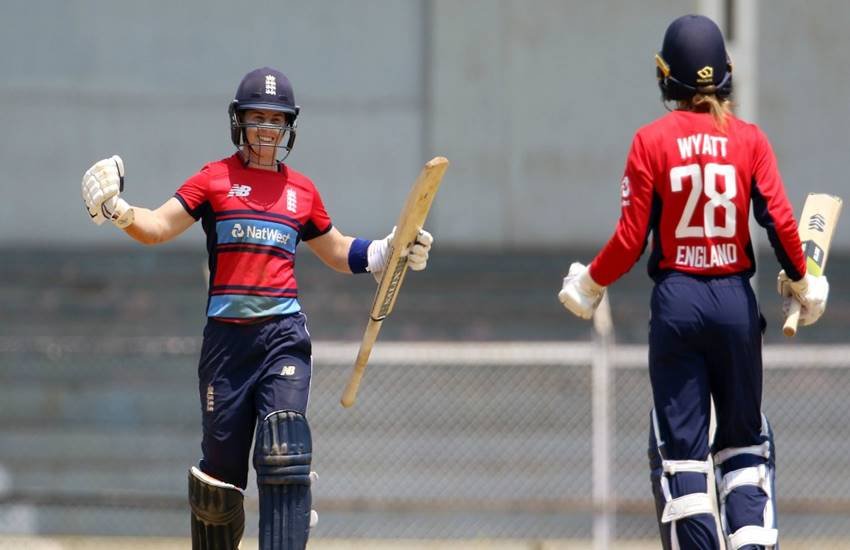 भारतीय महिला क्रिकेट टीम को रविवार को ट्राई सीरीज में दूसरी बार हार का सामना करना पड़ा। अहम मुकाबले में इंग्लैंड ने भारतीय टीम को सात विकेट से हराकर टूर्नामेंट में अपनी पकड़ मजबूत कर ली है। वहीं ऑस्ट्रेलिया से हार झेलने के बाद भारतीय टीम की उम्मीद फाइनल में पहुंचने की और कम हो गई है। इंग्लैंड की तरफ से सलामी बल्लेबाज डेनियल वेट ने शानदार 124 रनों की पारी खेलकर टीम की जीत में अहम भूमिका निभाई। डेनियल की विस्फोटक पारी के सामने भारत का बनाया गया सबसे बड़ा टोटल भी कम पड़ गया। भारत ने पहले बल्लेबाजी करते हुए स्मृति मंधाना और मिताली राज की अर्धशतकीय पारी की बदौलत 199 रन बनाने में कामयाब रही। इस लश्क्ष्य को इंग्लैंड की टीम ने सात विकेट रहते ही हासिल कर लिया। डेनियल वेट ने 52 गेंदों पर 13 चौके 04 छक्कों के साथ अपने इंटरनैशनल करियर का दूसरा शतक पूरा किया। 64 गेंदो में 124 रन बनाकर डेनियल दीप्ती शर्मा की गेंद पर कैच आउट हो गईं। बता दें कि डेनियल वेट भारतीय क्रिकेट टीम के कप्तान विराट कोहली की बड़ी फैन हैं, वह कई बार कोहली की बल्लेबाजी की तारीफ भी कर चुकी हैं।