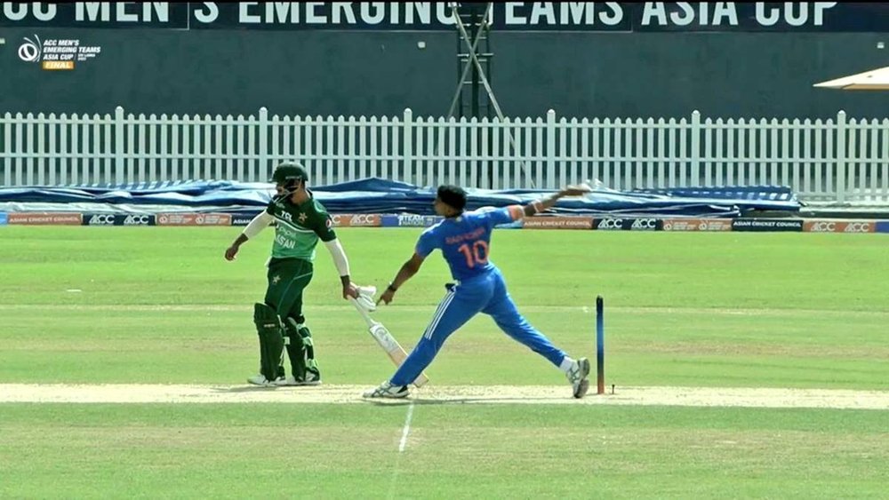 एमर्जिंग एशिया कप 2023 के फाइनल में इंडिया ए के खिलाफ पाकिस्तान ए की टीम मजबूत स्थिति में है। इसका कारण सईम अयूब और साहिबजादा फरहान की ओपनिंग जोड़ी है। दोनों ही बल्लेबाज अर्धशतक लगाकर पवेलियन लौटे। पहले विकेट के लिए 17.2 ओवर में 121 रन की साझेदारी की। हालांकि, इस दौरान सईम अयूब भाग्यशाली रहे। राजवर्धन हंगरगेकर की गेंद पर वह कैच आउट हो गए थे, लेकिन नोबॉल होने के कारण वह बच गए।