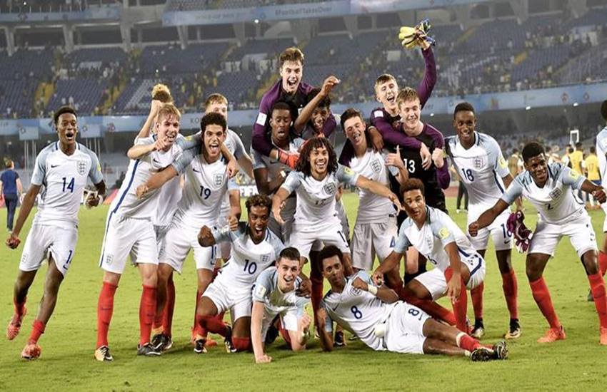 इंग्लैंड ने शनिवार को साल्ट लेक स्टेडियम में स्पेन को 5-2 से रौंदकर पहली बार फीफा अंडर-17 विश्व कप पर कब्जा जमा लिया है। फाइनल में इंग्लैंड ने पहली बार जगह बनाई थी और पहली बार ही ताज अपने सिर सजाने में कामयाब रहा। वहीं स्पेन चौथी बार फाइनल में पहुंचने के बाद भी खिताब से एक बार फिर एक कदम दूर रह गया। स्पेन इससे पहले 1991, 2003 और 2007 में उप विजेता रहा था। वहीं इंग्लैंड ने इस जीत के साथ इसी साल मई में क्रोएशिया में यूरोपीयन अंडर-17 चैंपियनशिप के फाइनल में स्पेन द्वारा पेनल्टी शूटआउट में मिली हार का बदला भी ले लिया है। खिताबी भिड़ंत में इंग्लैंड के लिए रिहान ब्रूवेस्टर ने 44 मिनट में, गिब्बस व्हाइट ने 58 में, फिलिप फोडेन ने 69 मिनट में और 84वें मिनट तथा गुएही ने 88वें मिनट में गोल किए। स्पेन के लिए सर्जियो गोमेज ने 10वें और 31वें मिनट में दो गोल किए।