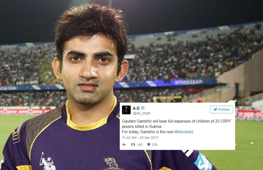 Gautam Gambhir will bear full expenses of children of 25 CRPF jawans killed in Sukma.