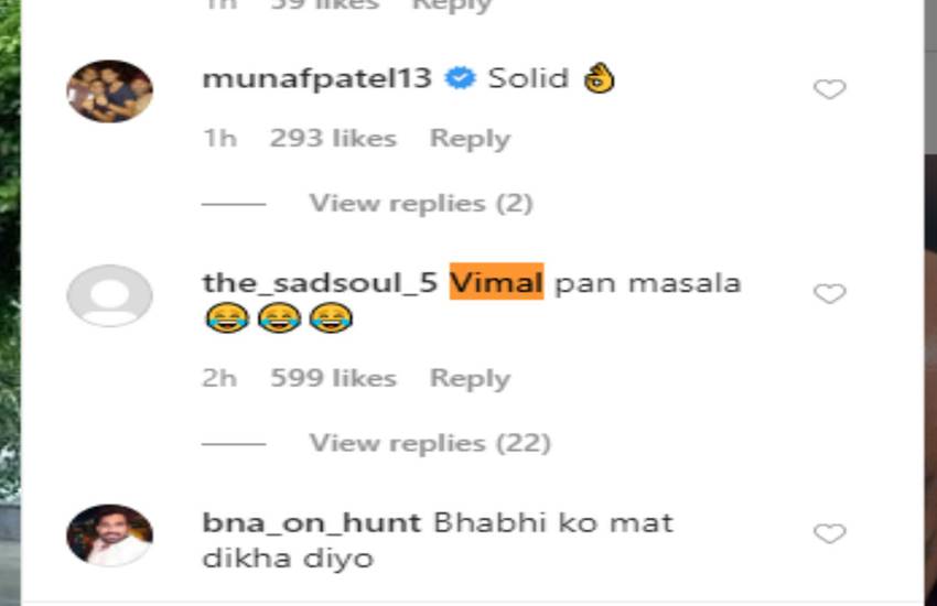हार्दिक ने जैसे ही ये तस्वीर शेयर की, लोग उन्होंने ट्रोल करने लगे। टीम इंडिया के सदस्य शिखर धवन ने इसे जबरदस्त बताया तो श्रेयस अय्यर ने दोनों भाईयों को करण-अर्जुन कहा। 2011 वर्ल्ड कप विजेता टीम के सदस्य मुनाफ पटेल ने सॉलिड बताया। इंग्लैंड के विकेटकीपर बल्लेबाज जोस बटलर ने कमेंट में कुछ लिखा नहीं, लेकिन उन्होंने हंसने वाली तीन इमोजी डाल दी। इस फैंस काफी मजे ले रहे हैं। एक फैन को विमल पाना मसाला याद आ गया।